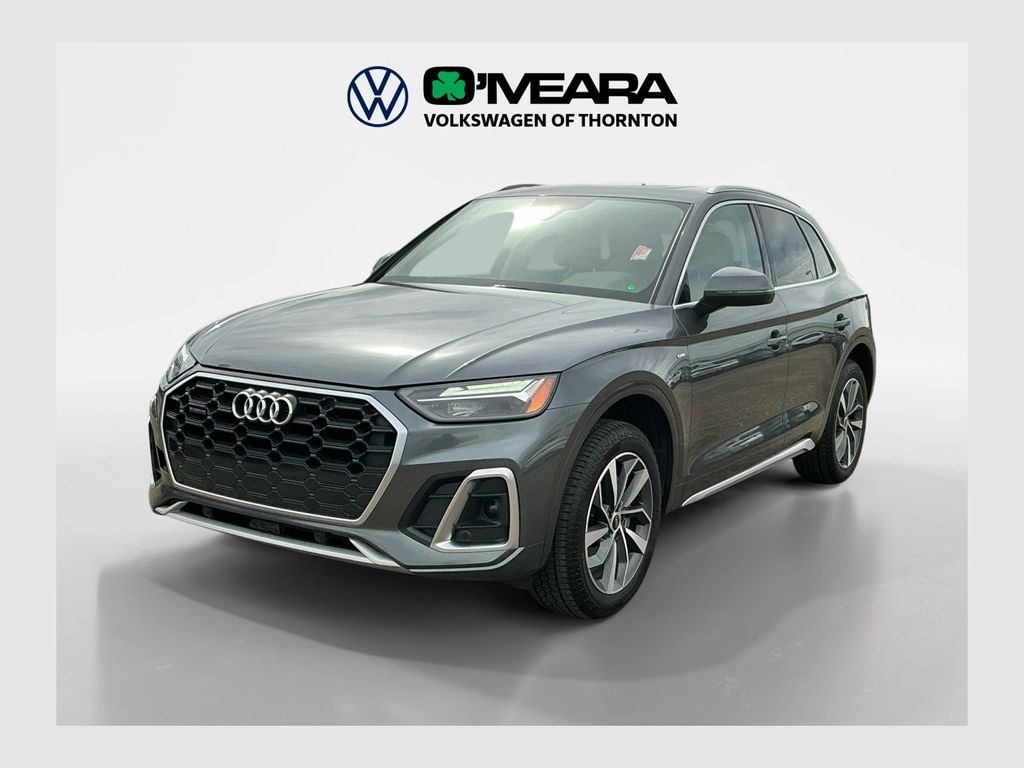 Q5 45 S line Premium quattro, 4D Sport Utility, 2.0L Turbocharged, 7-Speed Automatic S tronic, quattro, Daytona Gray Pearl, Atlas Beige Leather, 10 Speakers, 4-Wheel Disc Brakes, 5.302 Axle Ratio, ABS brakes, Air Conditioning, All-Weather Floor Mats, AM/FM radio, Audi Advanced Key, Audi Beam-Rings, Audi Guard Protection Kit, Auto High-beam Headlights, Auto-Dimming Power Folding Exterior Mirrors, Auto-dimming Rear-View mirror, Automatic temperature control, Brake assist, Bumpers: body-color, Cargo Mat, Compass, Convenience Package, Delay-off headlights, Driver door bin, Driver Seat Memory, Driver vanity mirror, Dual front impact airbags, Dual front side impact airbags, Electronic Stability Control, Emergency communication system: Audi connect CARE, Exterior Parking Camera Rear, Four wheel independent suspension, Front anti-roll bar, Front Bucket Seats, Front Center Armrest, Front dual zone A/C, Front fog lights, Front reading lights, Garage door transmitter: HomeLink, Genuine wood console insert, Genuine wood dashboard insert, Genuine wood door panel insert, Gray-Brown Birch Natural Wood Inlays, Heated 8-Way Power Front Bucket Seats, Heated door mirrors, Heated front seats, Heated Steering Wheel, Illuminated entry, Leather Seating Surfaces, Leather Shift Knob, Low tire pressure warning, Occupant sensing airbag, Outside temperature display, Overhead airbag, Overhead console, Panic alarm, Panoramic Sunroof, Passenger door bin, Passenger vanity mirror, Power door mirrors, Power driver seat, Power Liftgate, Power passenger seat, Power steering, Power windows, Privacy Trunk Cover, Radio data system, Radio: Audi Sound System, Rain sensing wipers, Rear air conditioning, Rear anti-roll bar, Rear fog lights, Rear reading lights, Rear seat center armrest, Rear window defroster, Rear window wiper, Remote keyless entry, Roof rack, Security system, SiriusXM All Access Service, Speed control, Speed-sensing steering, Speed-Sensitive Wipers, Split folding rear seat, Spoiler, Steering wheel mounted audio controls, Tachometer, Telescoping steering wheel, Tilt steering wheel, Traction control, Trip computer, Turn signal indicator mirrors, Variably intermittent wipers, Wheels: 19" 5-Double-Arm Design Bi-Color Finish.