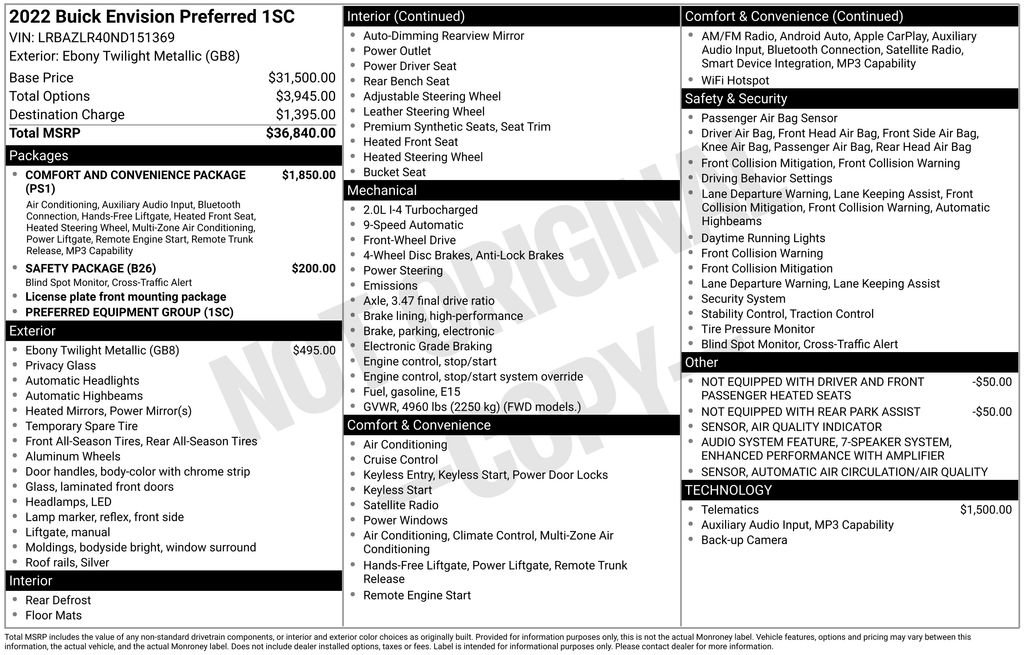 Recent Arrival! Ebony Twilight Metallic 2022 Buick Envision Preferred Clean CARFAX.