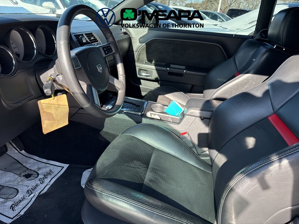 Challenger SRT8, 2D Coupe, SRT HEMI 6.1L V8, 5-Speed Automatic, RWD, Brilliant Black Crystal PC/Light Graystone PC, Dark Slate Gray Leather, 20" x 9" Aluminum SRT Design Wheels, 4-Wheel Disc Brakes, 6 Speakers, ABS brakes, Air Conditioning, Alloy wheels, AM/FM CD MP3 Radio, AM/FM radio: SIRIUS, AM/FM/CD/DVD/HDD/MP3 Radio w/Navigation, Auto-dimming Rear-View mirror, Brake assist, Bumpers: body-color, CD player, Compass, Delay-off headlights, Driver door bin, Driver vanity mirror, Dual front impact airbags, Electronic Stability Control, Four wheel independent suspension, Front anti-roll bar, Front Bucket Seats, Front Center Armrest, Front fog lights, Front reading lights, Fully automatic headlights, Garage door transmitter: HomeLink, Heated door mirrors, Heated front seats, High-Intensity Discharge Headlights, Hood Stripe, Illuminated entry, Leather Shift Knob, Low tire pressure warning, Navigation System w/GPS, Outside temperature display, Overhead airbag, Overhead console, Panic alarm, Passenger door bin, Passenger vanity mirror, Power door mirrors, Power driver seat, Power steering, Power Sunroof, Power windows, Premium Leather Trimmed Bucket Seats, Quick Order Package 22X, Radio data system, Rear anti-roll bar, Rear seat center armrest, Rear window defroster, Remote keyless entry, Security system, SIRIUS Realtime Traffic, SIRIUS Satellite Traffic, Speed control, Speed-sensing steering, Split folding rear seat, Spoiler, Steering wheel mounted audio controls, Tachometer, Telescoping steering wheel, Tilt steering wheel, Traction control, Trip computer, UConnect Hands-Free Communication, Variably intermittent wipers.