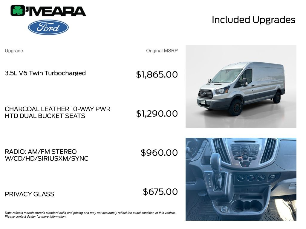 The 3.5L EcoBoost V6 engine delivers exceptional power and efficiency, while the 6-speed automatic transmission with overdrive ensures smooth, responsive performance. The heavy-duty trailer tow package, complete with a frame-mounted hitch receiver and trailering wiring provisions, makes this Transit-150 a capable companion for your towing needs.