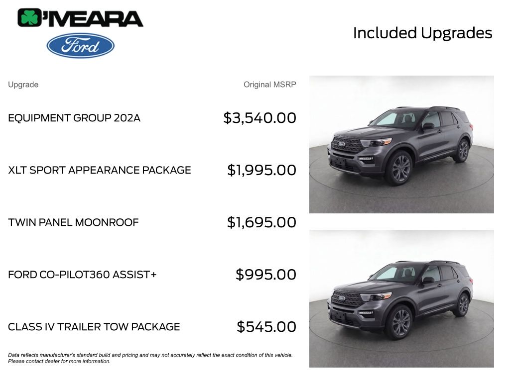 This Explorer XLT is brimming with features that make every journey more enjoyable. Sink into the heated ActiveX captain's chairs and take command of the road ahead, with the convenience of a power liftgate and the confidence of advanced driver-assist technologies like Intelligent Adaptive Cruise Control and Evasive Steering Assist. The twin-panel moonroof floods the cabin with natural light, while the premium audio system and SYNC 3 infotainment with Apple CarPlay and Android Auto keep you connected and entertained.