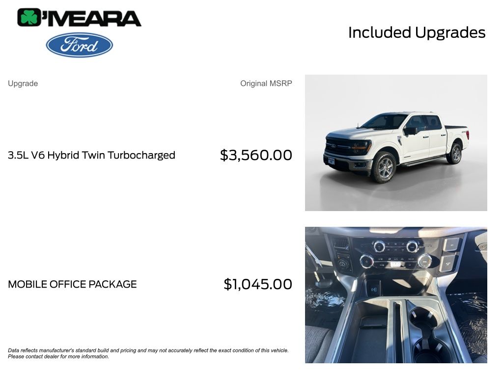 This F-150 XLT is more than just a capable workhorse; it's a mobile command center that adapts to your needs. With the Mobile Office Package, you can transform the cabin into a productive workspace, complete with a console worksurface and partitioned lockable rear storage. Whether you're on the job site or embarking on a weekend adventure, this truck is ready to handle it all.