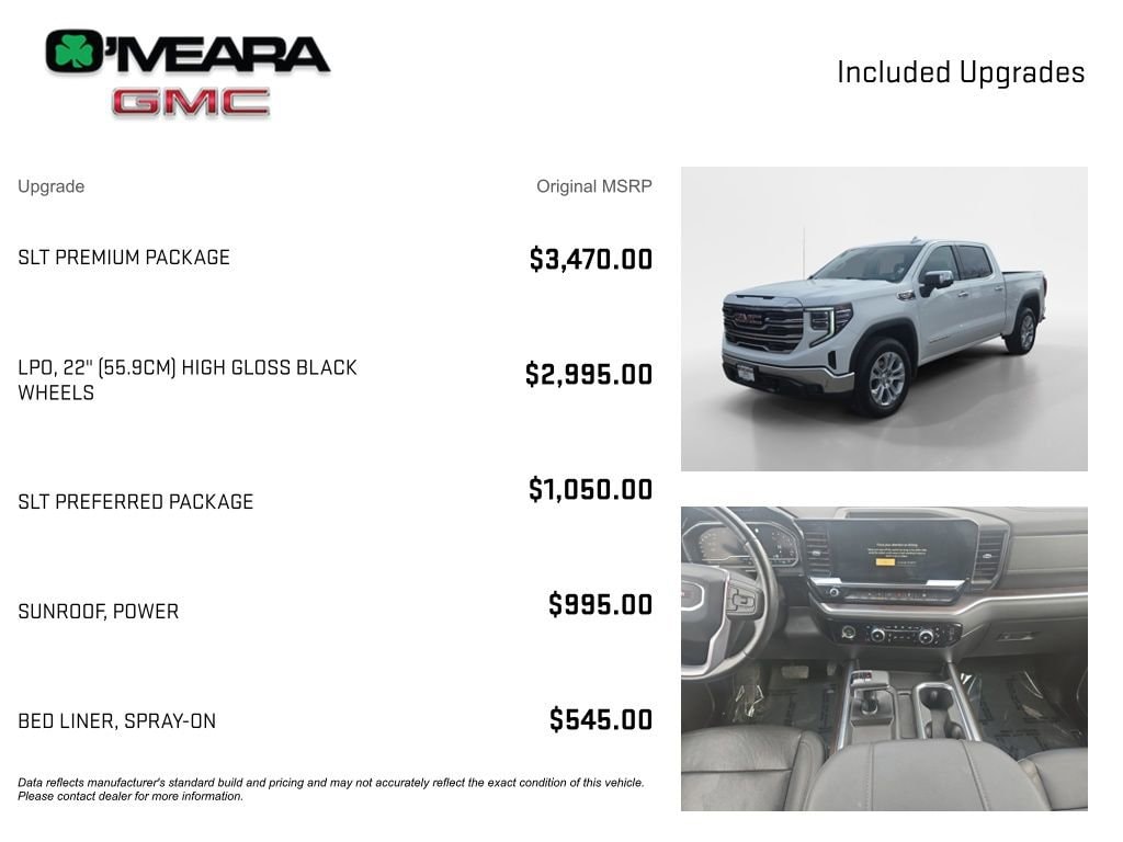 CLEAN CARFAX, NON SMOKER, 1 OWNER, Sierra 1500 SLT, 4D Crew Cab, EcoTec3 5.3L V8, 10-Speed Automatic, 4WD, Summit White, Jet Black Leather, 120-Volt Instrument Panel Power Outlet, 170 Amp Alternator, 2 Charge/Data USB Ports, 2 Type-C Charge-Only Rear USB Ports, 20 Polished Aluminum Wheels, 6-Speaker Audio System Feature, Adaptive Cruise Control, Auto-Locking Rear Differential, Auxiliary External Transmission Oil Cooler, Chrome Header & Chrome Grille Insert Bars, Chrome Wheel To Wheel Assist Steps, Color-Keyed Carpeting Floor Covering, Compass, Deep-Tinted Glass, Electric Rear-Window Defogger, Electrical Steering Column Lock, Electronic Stability Control, Floor-Mounted Center Console, Front Bucket Seats, Front dual zone A/C, Front Frame-Mounted Black Recovery Hooks, Front Rainsensing Wipers, Fully automatic headlights, GMC Connected Access Capable, HD Rear Vision Camera, Heated 2nd Row Outboard Seats, High Capacity Suspension Package, Keyless Open & Start, LED Cargo Area Lighting, Manual Tilt-Wheel & Telescoping Steering Column, Navigation System, OnStar & GMC Connected Services Capable, Perimeter Lighting, Power Door Locks, Power Front Passenger Windows w/Express Up/Down, Power Front Windows w/Driver Express Up/Down, Power Rake & Telescoping Steering Column, Power Rear Windows w/Express Down, Power Sliding Rear Window w/Rear Defogger, Power Sunroof, Preferred Equipment Group 4SA, Premium Bose 7-Speaker Sound System, Push Button Start, Rain sensing wipers, Rear Wheelhouse Liners, Remote Vehicle Starter System, SiriusXM w/360L, SLT Convenience Package, SLT Preferred Package, SLT Premium Package, Standard Suspension Package, Steering Wheel Audio Controls, Theft Deterrent System (Unauthorized Entry), Trailering Package, Universal Home Remote, Ventilated Driver & Front Passenger Seats, Wi-Fi Hotspot Capable, Wireless Charging, Wireless Phone Projection.