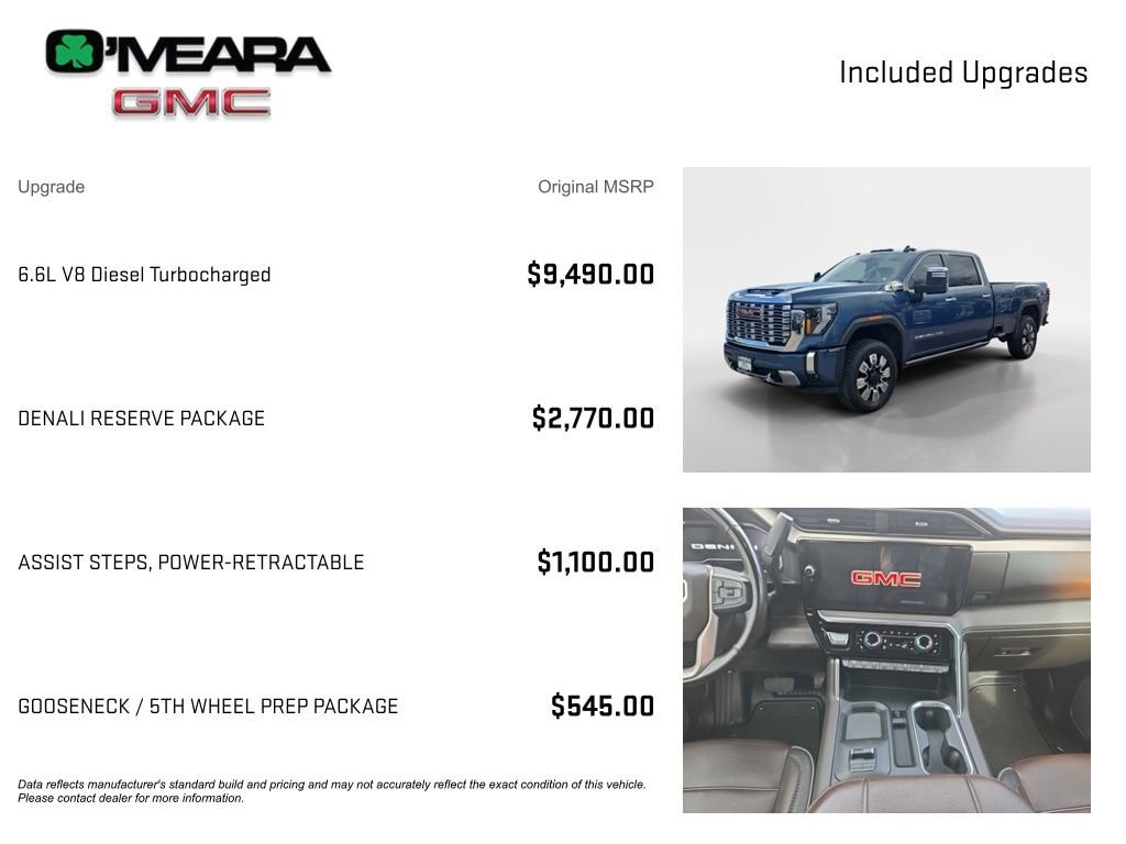 CLEAN CARFAX, NON SMOKER, APPLE CARPLAY, ANDROID AUTO, 1 OWNER, Sierra 3500HD Denali, 4D Crew Cab, Duramax 6.6L V8 Turbodiesel, 10-Speed Automatic, 4WD, Downpour Metallic, Atmosphere/Brownstone Leather, 120-Volt Bed Mounted Power Outlet, 120-Volt Instrument Panel Power Outlet, 2 Charge-Only Rear USB Ports, 2 Charge/Data USB Ports Inside Center Console, 2 USB Ports, 2-Speed Active Transfer Case, Bed View Camera w/2 Trailer Camera Provisions, Bose Premium 7-Speaker Sound System, Deep-Tinted Glass, Denali Reserve Package, Electric Rear-Window Defogger, Floor-Mounted Center Console, Front dual zone A/C, Front Rain-Sensing Wipers, Fully automatic headlights, Gooseneck/5th Wheel Prep Package, HD Surround Vision, Heated 2nd Row Outboard Seats, Heated Driver & Front Outboard Passenger Seats, Integrated Trailer Brake Controller, Keyless Open & Start, Lane Departure Warning System, LED Cargo Area Lighting, LED Smoked Amber Roof Marker Lamps, Manual Tilt-Wheel/Telescoping Steering Column, Polished Exhaust Tip, Power Front Windows w/Passenger Express Up/Down, Power Sliding Rear Window w/Defogger, Power Sunroof, Preferred Equipment Group 5SA, Premium audio system: Premium GMC Infotainment System, Push Button Start, Rear Cross Traffic Alert, Remote Vehicle Starter System, Safety Alert Seat, Signature Chrome Denali Grille, SiriusXM w/360L, Spray-On Pickup Bedliner w/Denali Logo, Steering Wheel Audio Controls, Technology Package, Trailer Camera Provisions, Trailer Side Blind Zone Alert, Ultrasonic Front & Rear Park Assist, Unauthorized Entry Theft-Deterrent System, Universal Home Remote, Ventilated Driver & Front Passenger Seats, Wireless Charging, Wireless Phone Projection.