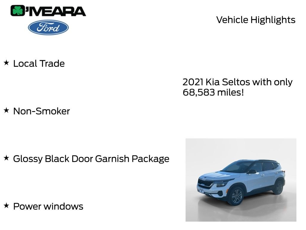 Whether you're seeking a versatile family hauler, a capable commuter, or a stylish companion for your active lifestyle, the 2021 Kia Seltos S is the perfect choice. Experience the perfect blend of performance, technology, and style â" visit our showroom today and let us demonstrate why the Seltos S should be your next vehicle.