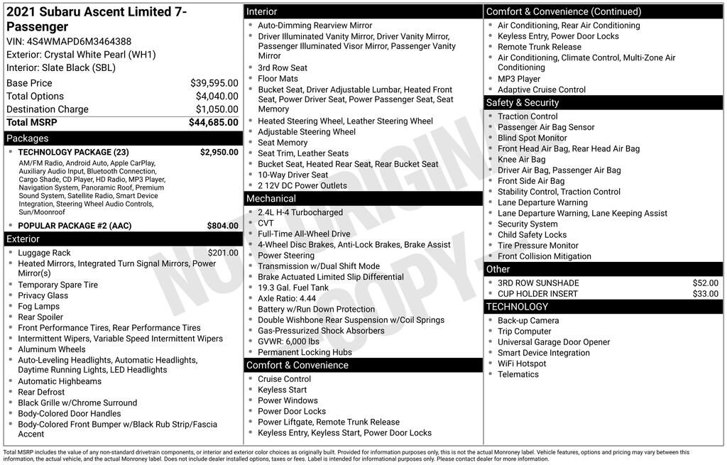 2021 Subaru Ascent Limited