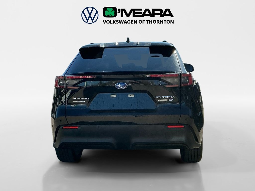 Solterra Limited, 4D Sport Utility, Electric Motor, 1-Speed Automatic, AWD, Galactic Black, Black Premium Synthetic, 11 Speakers, 13.8 Axle Ratio, 4-Wheel Disc Brakes, ABS brakes, Air Conditioning, All-Weather Floor Liners, AM/FM radio: SiriusXM, Auto High-beam Headlights, Auto-dimming Rear-View mirror, Automatic temperature control, Brake assist, Bumpers: body-color, Cargo Cover, Cargo Tray, Driver door bin, Driver vanity mirror, Dual front impact airbags, Dual front side impact airbags, Electronic Stability Control, Emergency communication system: Subaru Solterra Connect - Safety Connect (1 year trial included), Four wheel independent suspension, Front anti-roll bar, Front Bucket Seats, Front Center Armrest, Front dual zone A/C, Front fog lights, Front reading lights, Fully automatic headlights, Garage door transmitter: HomeLink, harman/kardon® Speakers, Heated door mirrors, Heated Front Bucket Seats, Heated front seats, Heated rear seats, Heated steering wheel, Illuminated entry, Knee airbag, Leather steering wheel, Low tire pressure warning, Memory seat, Navigation system: Cloud Navigation System (Subscription required), Occupant sensing airbag, Outside temperature display, Overhead airbag, Overhead console, Panic alarm, Passenger door bin, Passenger vanity mirror, Power door mirrors, Power driver seat, Power Liftgate, Power steering, Power windows, Radio data system, Radio: Subaru Solterra Connect 12.3" Multimedia System, Rain sensing wipers, Rear anti-roll bar, Rear reading lights, Rear seat center armrest, Rear window defroster, Remote keyless entry, Security system, Speed control, Speed-sensing steering, Split folding rear seat, Spoiler, Standard Model, StarTex Upholstery, Steering wheel mounted audio controls, Telescoping steering wheel, Tilt steering wheel, Traction control, Trip computer, Turn signal indicator mirrors, Variably intermittent wipers, Wheels: 20" x 7.5" J Aluminum-Alloy Gray Finish.