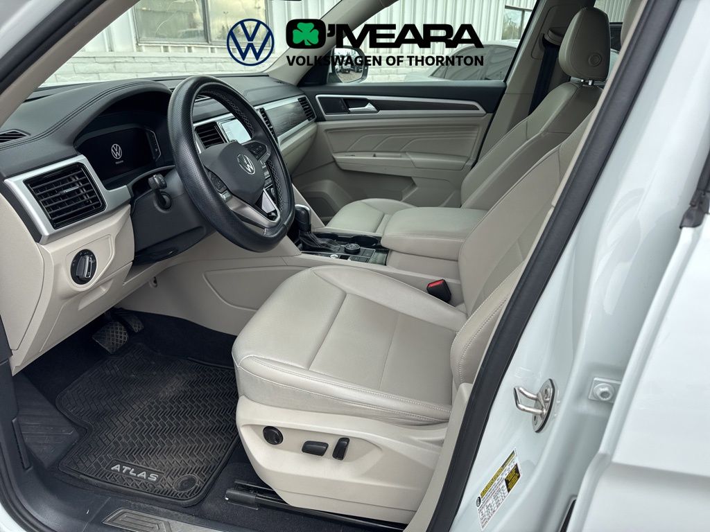 Freshly Serviced, Great Color Combo, Atlas 3.6L V6 SE w/Technology, 4D Sport Utility, 3.6L VR6, 8-Speed Automatic with Tiptronic, AWD, Pure White, Shetland Beige w/Perforated V-Tex Leatherette Seating Surfaces, 3.60 Axle Ratio, 3rd row seats: split-bench, 4-Wheel Disc Brakes, 6 Speakers, ABS brakes, Air Conditioning, Alloy wheels, AM/FM radio: SiriusXM with 360L, Atlas MDO Package - Captain's Chairs, Auto-Dimming Rear-View Mirror, Auto-dimming Rear-View mirror, Automatic temperature control, Black Wheel Package, Brake assist, Bumpers: body-color, Compass, Delay-off headlights, Driver door bin, Driver vanity mirror, Dual front impact airbags, Dual front side impact airbags, Electronic Stability Control, Emergency communication system, Exterior Parking Camera Rear, Four wheel independent suspension, Front anti-roll bar, Front Bucket Seats, Front Center Armrest, Front dual zone A/C, Front fog lights, Front reading lights, Fully automatic headlights, Heated Comfort Front Bucket Seats, Heated door mirrors, Heated front seats, Illuminated entry, Leather Shift Knob, Low tire pressure warning, Occupant sensing airbag, Outside temperature display, Overhead airbag, Overhead console, Panic alarm, Panoramic Sunroof Package, Passenger door bin, Passenger vanity mirror, Perforated V-Tex Leatherette Seating Surfaces, Power door mirrors, Power driver seat, Power Liftgate, Power steering, Power Tilting & Sliding Panoramic Sunroof, Power windows, Privacy Cover, Radio data system, Radio: MIB3 Composition Media w/8" Touchscreen, Rain sensing wipers, Rear air conditioning, Rear anti-roll bar, Rear reading lights, Rear seat center armrest, Rear window defroster, Rear window wiper, Remote keyless entry, Roof rack: rails only, Rubber Mats Kit - Captain's Chairs, Security system, Speed control, Speed-sensing steering, Split folding rear seat, Spoiler, Standard Suspension, Steering wheel mounted audio controls, Tachometer, Telescoping steering wheel, Tilt steering wheel, Traction control, Trip computer, Turn signal indicator mirrors, Variably intermittent wipers, Wheels: 20" x 8J 5-Spoke Black Painted Alloy, Wheels: 20" x 8J 5-Spoke Silver Painted Alloy.