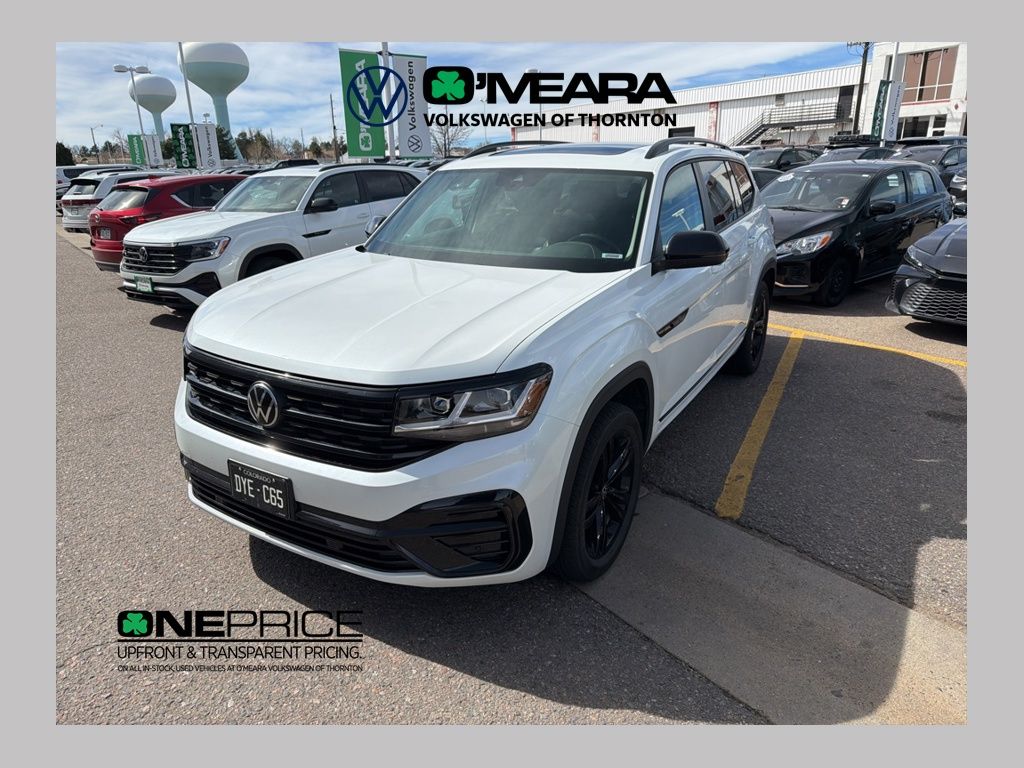 2 VW Keys, 1 Owner Local Trade In, Fully Serviced, Atlas 3.6L V6 SEL R-Line, 4D Sport Utility, 3.6L VR6, 8-Speed Automatic with Tiptronic, AWD, Opal White Pearl, Titan Black Premium Synthetic, 3.60 Axle Ratio, 3rd row seats: split-bench, 4-Wheel Disc Brakes, 6 Speakers, ABS brakes, Air Conditioning, Alloy wheels, AM/FM radio: SiriusXM with 360L, Atlas Protection Package- Bench Seat, Auto High-beam Headlights, Auto-Dimming Rear-View Mirror, Auto-dimming Rear-View mirror, Automatic temperature control, Brake assist, Bumperdillo Protection Plate for Rear Bumper, Bumpers: body-color, Compass, Delay-off headlights, Driver door bin, Driver vanity mirror, Dual front impact airbags, Dual front side impact airbags, Electronic Stability Control, Emergency communication system: VW Car-Net Safe & Secure 5-year, Exterior Parking Camera Rear, Four wheel independent suspension, Front anti-roll bar, Front Bucket Seats, Front Center Armrest, Front dual zone A/C, Front fog lights, Front reading lights, Fully automatic headlights, Heated Comfort Front Bucket Seats, Heated door mirrors, Heated front seats, Heated steering wheel, Heavy Duty Trunk Liner w/VW CarGo Blocks, Illuminated entry, Leather Shift Knob, Low tire pressure warning, Luggage Net, Memory seat, Navigation System, Occupant sensing airbag, Outside temperature display, Overhead airbag, Overhead console, Panic alarm, Passenger door bin, Passenger vanity mirror, Perforated V-Tex Leatherette Seating Surfaces, Power door mirrors, Power driver seat, Power Liftgate, Power moonroof: Panoramic, Power passenger seat, Power steering, Power windows, Privacy Cover, Radio data system, Radio: MIB3 Discover Media w/8" Touchscreen Nav, Rain sensing wipers, Rear air conditioning, Rear anti-roll bar, Rear reading lights, Rear seat center armrest, Rear window defroster, Rear window wiper, Remote keyless entry, Rubber Mats Kit - Bench Seats, Security system, Speed control, Speed-sensing steering, Split folding rear seat, Spoiler, Sport steering wheel, Standard Suspension, Steering wheel mounted audio controls, Tachometer, Telescoping steering wheel, Tilt steering wheel, Traction control, Trailer Hitch Extras, Trip computer, Turn signal indicator mirrors, Variably intermittent wipers, Volkswagen Logo Puddle Lights, VW Care, Wheels: 20" x 8J 5-Spoke Black Painted Alloy.