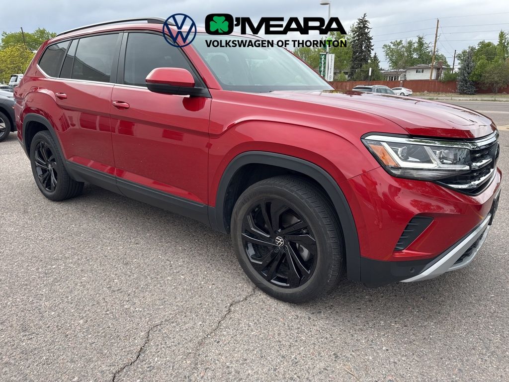 2 VW Keys, Great Color Combo, One Owner Local Trade In, Good Service History, Hard to Find, Rear Bucket Seats, Atlas 3.6L V6 SE w/Technology, 4D Sport Utility, 3.6L VR6, 8-Speed Automatic with Tiptronic, AWD, Aurora Red Metallic, Titan Black Premium Synthetic, 2nd-Row Dual Captain's Chairs, 3.60 Axle Ratio, 3rd row seats: split-bench, 4-Wheel Disc Brakes, 6 Speakers, ABS brakes, Air Conditioning, Alloy wheels, AM/FM radio: SiriusXM with 360L, Atlas MDO Package - Captain's Chairs (DISC), Auto-Dimming Rear-View Mirror, Auto-dimming Rear-View mirror, Automatic temperature control, Black Wheel Package, Brake assist, Bumpers: body-color, Compass, Delay-off headlights, Driver door bin, Driver vanity mirror, Dual front impact airbags, Dual front side impact airbags, Electronic Stability Control, Emergency communication system: VW Car-Net Safe & Secure 5-year, Exterior Parking Camera Rear, Four wheel independent suspension, Front anti-roll bar, Front Bucket Seats, Front Center Armrest, Front dual zone A/C, Front fog lights, Front reading lights, Fully automatic headlights, Heated Comfort Front Bucket Seats, Heated door mirrors, Heated front seats, Heavy Duty Trunk Liner w/VW CarGo Blocks, Illuminated entry, Leather Shift Knob, Low tire pressure warning, Occupant sensing airbag, Outside temperature display, Overhead airbag, Overhead console, Panic alarm, Panoramic Sunroof Package, Passenger door bin, Passenger vanity mirror, Perforated V-Tex Leatherette Seating Surfaces, Power door mirrors, Power driver seat, Power Liftgate, Power steering, Power Tilting & Sliding Panoramic Sunroof, Power windows, Privacy Cover, Radio data system, Radio: MIB3 Composition Media w/8" Touchscreen, Rain sensing wipers, Rear air conditioning, Rear anti-roll bar, Rear reading lights, Rear seat center armrest, Rear window defroster, Rear window wiper, Remote keyless entry, Roadside Assistance Kit, Rubber Mats Kit - Captain's Chairs, Security system, Speed control, Speed-sensing steering, Split folding rear seat, Spoiler, Standard Suspension, Steering wheel mounted audio controls, Tachometer, Telescoping steering wheel, Tilt steering wheel, Traction control, Trip computer, Turn signal indicator mirrors, Variably intermittent wipers, VW Care, Wheels: 20" x 8J 5-Spoke Black Painted Alloy, Wheels: 20" x 8J 5-Spoke Silver Painted Alloy.