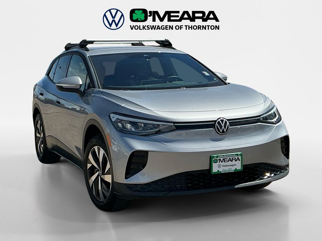 2 VW Keys, Low Low Miles, Great Color Combo, Fully Serviced, ID.4 Pro, 4D Sport Utility, Electric Motor, Single-Speed Automatic, AWD, Silver Mist Metallic, Gray W/Black Bolsters Cloth, 3.90 Axle Ratio, 4 Wheel Independent Suspension, 7 Speakers, ABS brakes, Air Conditioning, Alloy wheels, Auto High-beam Headlights, Auto-dimming Rear-View mirror, Automatic temperature control, Brake assist, Bumpers: body-color, Cloth Seating Surfaces, Delay-off headlights, Driver door bin, Driver vanity mirror, Driver's Seat Mounted Armrest, Dual front impact airbags, Dual front side impact airbags, Electronic Stability Control, Emergency communication system: VW Car-Net Safe & Secure 5-year, Exterior Parking Camera Rear, Four wheel independent suspension, Front anti-roll bar, Front Bucket Seats, Front dual zone A/C, Front reading lights, Fully automatic headlights, Heated door mirrors, Heated Front Seats, Heated front seats, Illuminated entry, Low tire pressure warning, Navigation System, Occupant sensing airbag, Outside temperature display, Overhead airbag, Overhead console, Panic alarm, Passenger door bin, Passenger seat mounted armrest, Passenger vanity mirror, Power door mirrors, Power steering, Power windows, Radio data system, Radio: Discover Pro Max w/12" Touchscreen Nav, Rain sensing wipers, Rear anti-roll bar, Rear reading lights, Rear window defroster, Rear window wiper, Remote keyless entry, Speed control, Speed-sensing steering, Split folding rear seat, Spoiler, Steering wheel mounted audio controls, Telescoping steering wheel, Tilt steering wheel, Traction control, Trailer Hitch Extras, Trip computer, Turn signal indicator mirrors, Variably intermittent wipers, Wheels: 19" 2-Tone Machined Alloy.