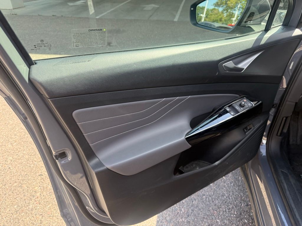 ID.4 Pro S, 4D Sport Utility, Electric Motor, Single-Speed Automatic, AWD, Pure Gray, Gray Premium Synthetic, 3.90 Axle Ratio, 4 Wheel Independent Suspension, 7 Speakers, ABS brakes, Air Conditioning, Auto High-beam Headlights, Auto-dimming Rear-View mirror, Auto-Dimming Rearview Mirror w/HomeLink Connect, Automatic temperature control, Brake assist, Bumpers: body-color, Delay-off headlights, Driver door bin, Driver vanity mirror, Driver's Seat Mounted Armrest, Dual front impact airbags, Dual front side impact airbags, Electronic Stability Control, Emergency communication system: VW Car-Net Safe & Secure 5-year, EV Roadside Assistance Kit, Exterior Parking Camera Rear, Four wheel independent suspension, Front anti-roll bar, Front Bucket Seats, Front dual zone A/C, Front fog lights, Front reading lights, Fully automatic headlights, Heated door mirrors, Heated Front Seats, Heated front seats, Heated steering wheel, Heavy Duty Trunk Liner w/VW CarGo Blocks, Illuminated entry, Low tire pressure warning, Luggage Net, Memory seat, Navigation System, Occupant sensing airbag, Outside temperature display, Overhead airbag, Overhead console, Panic alarm, Passenger door bin, Passenger seat mounted armrest, Passenger vanity mirror, Perforated V-Tex Leatherette Seating Surfaces, Power door mirrors, Power driver seat, Power Liftgate, Power passenger seat, Power steering, Power windows, Radio data system, Radio: Discover Pro Max w/12" Touchscreen Nav, Rain sensing wipers, Rear anti-roll bar, Rear reading lights, Rear seat center armrest, Rear window defroster, Rear window wiper, Remote keyless entry, Rubber Mats Kit, Speed control, Speed-sensing steering, Split folding rear seat, Spoiler, Steering wheel mounted audio controls, Telescoping steering wheel, Tilt steering wheel, Traction control, Trip computer, Turn signal indicator mirrors, Variably intermittent wipers, Wheels: 20" 5-Spoke 2-Tone Machined Alloy.